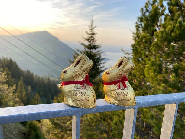 Plus de 450 œufs seront cachés par le lapin de Pâques le dimanche de Pâques sur le Rigi ( Kulm, Chäserenholz, Staffel, First, Kaltbad, Scheidegg et Seebodenalp ). Les personnes qui trouveront un œuf (un seul œuf par personne) pourront le déposer dans un restaurant ouvert de 10h00 à 16h00 et, grâce au généreux soutien de Lindt, recevoir le prix immédiat et sucré, un lapin en or Lindt. Tous les œufs trouvés participeront au grand tirage au sort final.