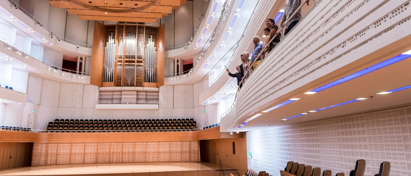Participez à l'une de nos visites uniques et apprenez-en plus sur la vision architecturale de Jean Nouvel et vivez de près le jeu de l'eau et de la lumière. Laissez-vous fasciner par nos innombrables salles et foyers. Visitez la célèbre salle de concert, considérée comme l'une des meilleures au monde. Apprenez-en plus sur ses dimensions parfaites, sa chambre d'écho et son réflecteur sonore réglable en hauteur, qui contribuent à une acoustique optimale. Nos visites sont remplies d'informations et de détails intéressants sur la création du KKL Luzern.