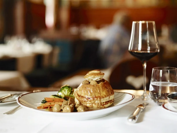 Spécialité de la maison: Luzener Chügelipastete avec légumes et raisins secs marinés au cognac