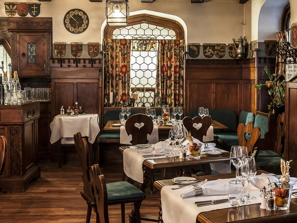 À la Burgerstube riche d’histoire, vous découvrez la ville de Lucerne authentique dans une ambiance chaleureuse. Bois foncé, fioritures, vitres en culs-de-bouteilles, la salle se présente aujourd’hui encore comme elle a été aménagée à l’époque, en 1908, en style néogothique.