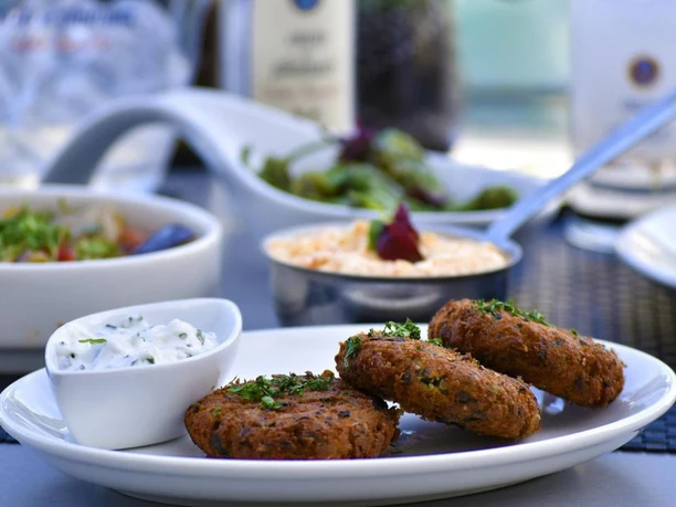 Les spécialités du restaurant sont les mezzé et d’autres classiques de la cuisine hellénique. Préparés dans la mesure du possible sans gluten.
