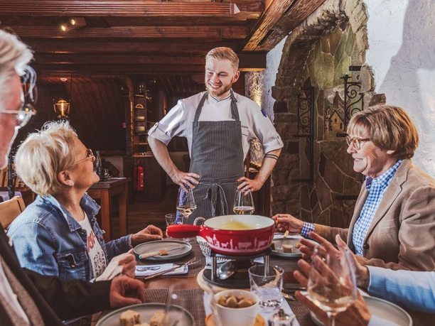 Dégustez dans notre restaurant des spécialités de fondue au fromage et d'autres délices maison des Grisons, au cœur de la vieille ville de Lucerne. Sur trois étages rustiques et tortueux, notre restaurant peut accueillir jusqu'à 80 hôtes. Grâce à la subdivision confortable, vous pouvez réserver votre propre étage à partir d'un petit nombre de personnes et être ainsi tout à fait entre vous.