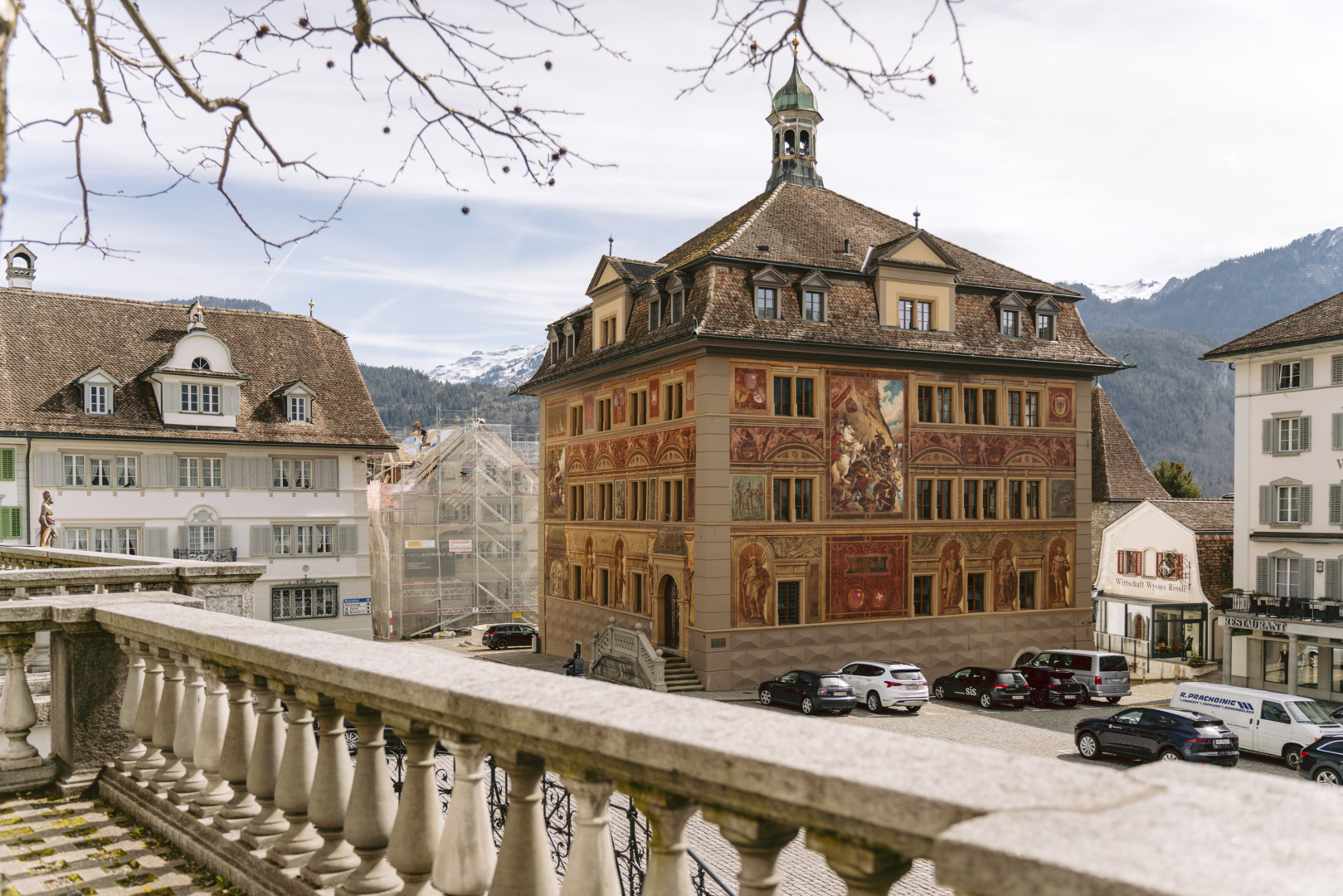 La petite ville de Schwyz est le chef-lieu du canton du même nom. Elle est située au pied des Mythen, montagnes imposantes en forme de pyramides.
