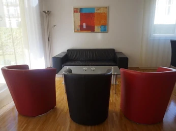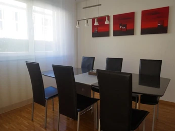 Appartement moderne de 3 pièces (84 m2) au rez-de-chaussée d'un immeuble collectif (année de construction 2006) dans le centre d'Engelberg (près de la gare). L'appartement dispose d'un salon avec télévision grand écran et chaîne stéréo modernes, d'une cuisine moderne avec lave-vaisselle, plan de travail en granit, plaque de cuisson en vitrocéramique, cafetière Delizio, four, toute une gamme d'ustensiles de cuisine, (y compris grille-pain, bouilloire électrique, service à raclette et à fondue, bouilloire à œufs), service de table uniformément équipé, bar de cuisine avec 3 chaises hautes, 1 chambre à coucher avec un lit double (180 x 200cm), 1 chambre à coucher avec 2x2 lits superposés (lits superposés), bain/douche/WC, canapé avec groupe rembourrage et lampadaire, table à manger avec 8 sièges, machine à laver et sèche-linge dans l'appartement, barbecue à gaz disponible, place de garage réservée. Transports publics : à quelques pas seulement de la gare et de l'arrêt de ski-bus. Inclus dans le prix : taxe de séjour, WLAN, garage, électricité, 12 capsules de café Delizio, linge de toilette et de cuisine, serviettes, suffisamment de papier toilette, détergent à vaisselle et poudre à lessiver. Caractéristiques principales : Parquet, situation calme et centrale, garage, jardin couvert avec mobilier, barbecue et stores, pelouse pour les bains de soleil, vue panoramique. Plus de fonctionnalités : Local séparé pour le stockage des skis et espace de stationnement pour les vélos, ascenseur, aire de jeux pour les enfants, accessible aux fauteuils roulants. Évaluation des clients d'Engelberg Tourism : 4,8/5. 100% ont recommandé cet hébergement.
