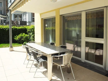 84 m2. Autres informations du fournisseur: Bel appartement moderne de 3 pièces (84 m2) au rez-de-chaussée d'un immeuble d'appartements (construit en 05/06) dans le centre d'Engelberg (près de la gare). L'appartement spacieux dispose d'un salon lumineux avec une télévision moderne à écran large, Wifi gratuit et radio internet, une cuisine ouverte moderne, entièrement équipée avec lave-vaisselle, machine à café Delizio et micro-ondes, une chambre principale avec lit double (180x200m), une chambre d'enfant avec 2x2 lits superposés, bain/douche/WC. Magnifique coin salon de jardin avec vue sur les montagnes. Lave-linge et sèche-linge dans l'appartement. Place de parking dans le garage souterrain. Salle de ski avec sèche chaussures, gants et casque. Local de stockage des bicyclettes.Animaux non autorisés. APPARTEMENT NON FUMEUR. Appartement à 3 pièces au rez-de-chaussée: salon, cuisine, 1 chambre avec 1 lit double, 1 chambre avec 2x2 lits superposés, bain/douche/wc. Inclu: Serviettes de bain et de cuisine, garage, taxe de séjour. Exclu: Lit pour bébé CHF 20.00, caution de CHF 300.00 avec carte de crédit.
