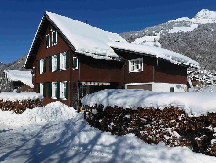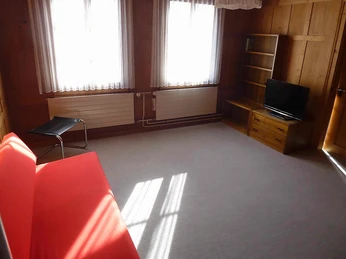180 m2. Autres informations du fournisseur: Chalet en bois, d'environ 100 ans, dans un endroit très calme avec de belles vues sur les montagnes et avec un grand jardin. Terrasse derrière la maison. En hiver, bus gratuit à environ 200 m. La maison dispose d'une atmosphère chaleureuse, charmante et avec meubles confortables (remodelage et de rénovation intérieure à l'hiver 2012/13). 6 pièces (env. 150 m2) sur 2 étages. Au rez dechaussée, il y a un grand salon salle à manger, une cuisine moderne et bien équipée avec lave-vaisselle et machine à café automatique, salle de bains-WC, machine à laver. Au premier étage il ya 3 chambres doubles (une avec lit français 140cm), 1 chambre à un lit, douche/WC, salle de télévision avec un coin salon. Boiseries. Chauffage central. Internet Wi-Fi gratuite. Garage (hauteur limitée) et un parking extérieur. Appartement non fumeur, animaux domestiques non accèptés. Appartement à 6 pièces (180 m2) sur 2 étages, grand salon / salle à manger de chaussée, cuisine moderne avec lave-vaisselle, Salle de bains-WC, machine à laver, 3 chambres doubles, 2 lits 160 sont larges, 1 lit en 140, 1 chambre individuelle,Douche/WC, salle de télévision avec un coin salon. Inclu: Serviettes de bain et de cuisine, taxe de séjour. Exclu: Caution de clé CHF 300.00.