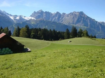 On the sunny Haldi high plateau, high above the Uri valley floor, 1280 metres above sea level in the middle of the alpine and mountain meadows, stands the holiday home, in an idyllic location 100 metres from the farm. Enjoy the peace and quiet, the marvellous view and let your mind wander. Children and parents appreciate the large meadows to play in and life on the nearby farm with its many animals. Children can feed the chickens and sample the delicious farm produce. The magnificent panorama over the Uri Alps, the Reuss Valley and as far as Lake Uri makes every holiday heart beat faster. Winter guests can reach the ski lift and the toboggan run in a few minutes on foot. You can ski from the piste to the house. There are great snowshoe, ski and mountain bike tours on the doorstep. A jewel awaits nature lovers and children who would like to see and experience animals on the nearby farm. Families and groups of up to 12/14 people can rent both flats. In the winter months it is recommended to take the cable car up, as the road is not cleared of snow. Other sports and leisure activities: Snowshoeing, sledging and hiking Other bedroom facilities (bedroom 1): Both flats can be rented for groups of up to 12 / 14 people Other kitchen equipment (Kitchen1): Kettle Sports facilities in the area: Mountaineering, Cycling, Alpine skiing, Cross-country skiing Basic information - Pets allowed: 1 - Floor on which the object can be found: 2. floor - size of property: 320 m² - non-smoking - Number of bedrooms: 2 - Number of bathrooms: 1 Top features - air conditioning: no - underfloor heating: In part - completely enclosed (by wall, fence or hedge) - Total of private car parking spaces: 1 - ㄴ of which private outdoor parking spaces: 1 Sleeping bedroom 2 - double bed (1.80 m width) - single bed - bunk bed - bedroom is dimmable in the living area - double sofa bed for 2 people - bedroom is dimmable Bathroom bathroom 2 - shower - basin - toilet - daylight Guest toilet (or WC) - toilet Cooking/Living - fridge/freezer: fridge - stove: stove - kitchen hood - oven - size of kitchen: 17 m² - number of dining tables: 1 - number of seats: 10 - number of living rooms: 1 Entertainment - TV: TV - radio Utility - vaccum cleaner Outside area - grill/barbecue: grill/barbecue Surroundings - view: mountain, garden, forrest, lawn - Nearest town centre: 15,0 km Distinctive features - chalet - located in the middle of the countryside surface du terrain: 320m².