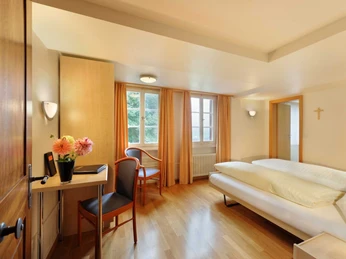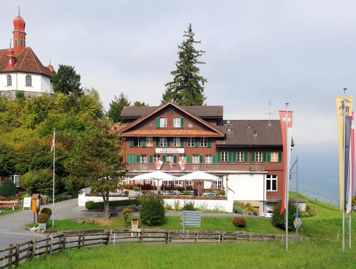 Dans le centre géographique de la Suisse, située sur un plateau à 750 mètres d'altitude avec vue panoramique imprenable. Situé directement sur la Voie médiévale de Saint-James. De Lucerne environ 20 minutes, à partir de Zurich / Bâle 90 minutes. En train via Lucerne - Sachseln, puis en bus à Flüeli-Ranft. L'auberge (16 chambres) et chalet (17 chambres) Paxmontana est situé à l'endroit le plus central, entre la maison et la maison de Saint-frère Nicolas.