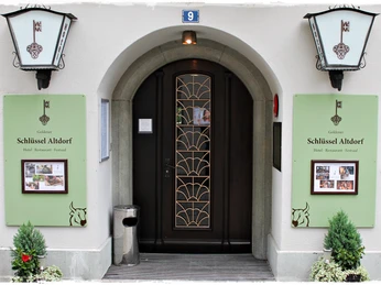 La maison dispose de 18 chambres pour un total de 45 lits. En fonction de la saison, l'équipe du Goldenen Schlüssen sert des plats créatifs dans le restaurant confortable avec barbecue au charbon de bois. Un parking privé, l'accès à Internet ainsi que la meilleure connexion possible aux transports publics sont garantis.