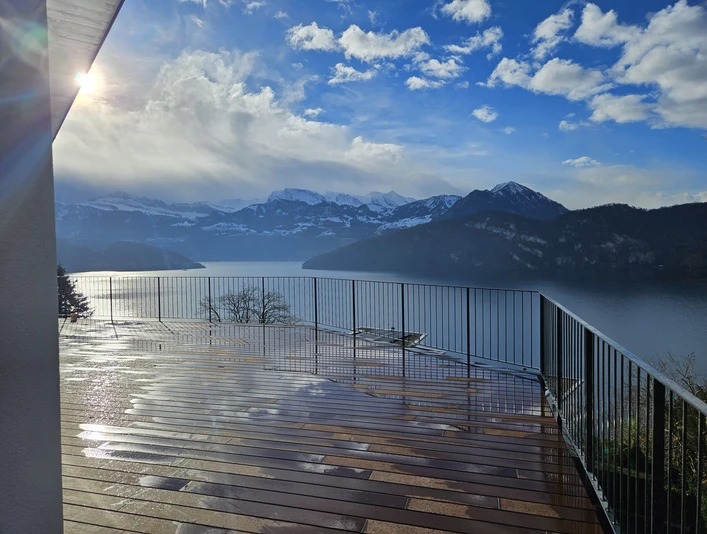Notre appartement baigné de lumière vous offre tout ce dont vous avez besoin pour un séjour reposant et agréable : un équipement moderne, des matériaux de qualité et une touche de convivialité suisse. Que vous commenciez la journée par un café sur la terrasse avec vue sur le lac des Quatre-Cantons ou que vous vous retiriez dans le confortable salon après une randonnée en montagne, vous pourrez vous détendre et laisser votre âme vagabonder.
