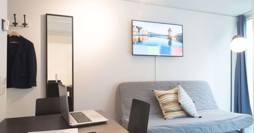 Ce magnifique et moderne studio meublé "Bourbaki II" à Lucerne ne laisse rien à désirer. Le joli logement de vacances offre des places de couchage pour un total de trois personnes sur 25m2. En plus d'un lit double, un canapé-lit est disponible dans le studio. L'appartement meublé dispose d'une petite kitchenette équipée d'une cuisinière en vitrocéramique, d'un micro-ondes avec fonction cuisson et grill, d'une machine à café et de tous les ustensiles de cuisine nécessaires. Si vous avez besoin d'un rafraîchissement, vous pouvez utiliser les articles de toilette fournis dans la salle de bain. La salle de bains dispose également d'une douche, de serviettes et d'un sèche-cheveux. Des machines à laver et des séchoirs sont disponibles au rez-de-chaussée.