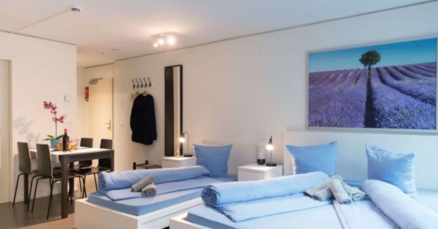 Ce bel appartement de vacances sur l'Allmend à Lucerne est parfait pour un séjour à Lucerne. L'appartement meublé est équipé d'un total de quatre couchages. Dans le spacieux salon/chambre à coucher, il y a un lit double, un lit simple et un canapé-lit avec fonction coulissante. L'élégant appartement de vacances dispose aussi d'une cuisine. Vous y trouverez tous les ustensiles courants tels que plaques de cuisson, micro-ondes et machine à café. Bien sûr, il y a aussi une salle de bain avec douche, sèche-cheveux, serviettes, serviettes de bain et articles d'hygiène.