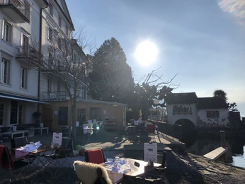Un petit hôtel familier avec une atmosphère intime. Situation ensoleillée et centrale. Au bord du lac à 2 minutes seulement du débarcadère. Possibilités de se baigner dans le lac. Pelouse à disposition. Restaurant en plein air.
