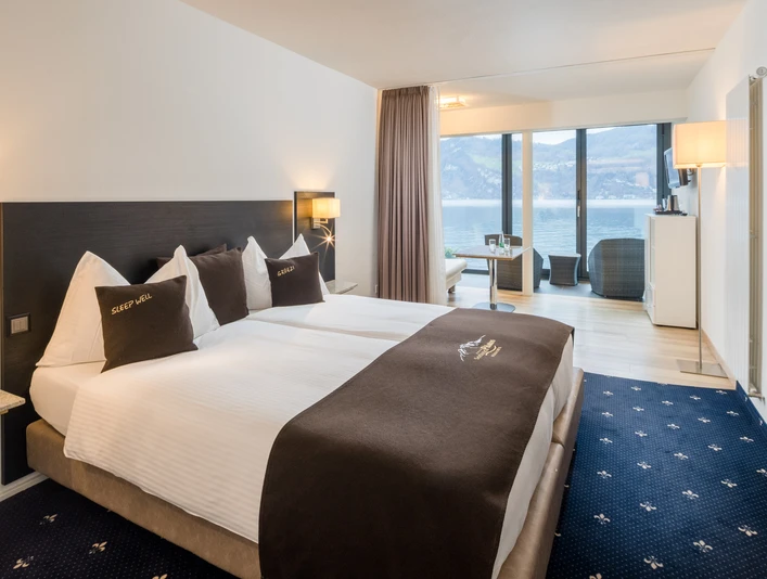 Hôtel de vacances attrayant avec piscine couverte, jacuzzi, sauna. 2 restaurants, bar. Au bord du lac avec plage, aire de repos, embarcadère privé, vue panoramique.
