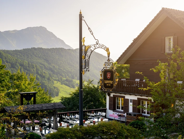 Die Taverne 1879 ist ein Ort traditioneller Schweizer Gastfreundschaft, eingebettet in die atemberaubende Umgebung des Bürgenstock Resort Lake Lucerne. Die Zimmer, alle im Chalet-Stil gehalten, bieten Queen-Size-Boxspringbetten und vereinen schlichte Eleganz mit alpinem Charme. Das Bürgenstock Resort bietet eine Auswahl von zehn Restaurants, Bars und Lounges, von denen jede einen unvergesslichen Panoramablick auf den See oder die majestätischen Berge bietet. Hier können Gäste kulinarische Höhepunkte von traditioneller Schweizer Küche bis hin zu exquisiten asiatischen Köstlichkeiten geniessen. Für Aktivurlauber bietet die unmittelbare Umgebung zahlreiche Freizeitmöglichkeiten. Erkunden Sie den Hammetschwand Lift, den höchsten Aussenlift Europas, oder spielen Sie eine Runde Tennis in den Diamond Domes. Golfliebhaber können ihr Können auf dem Bürgenstock Alpine Golf Platz unter Beweis stellen.