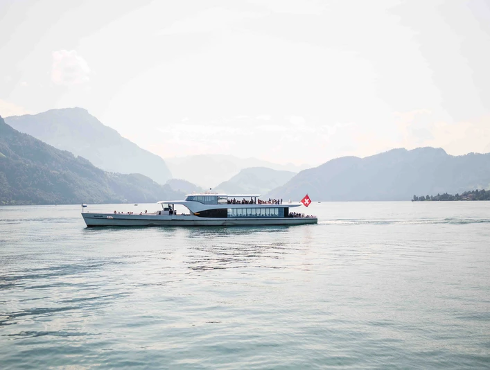 En route de manière durable sur le lac des Quatre-Cantons – à bord du Saphir H₂ Découvrez la ville de Lucerne et le panorama majestueux des montagnes sous un nouveau jour – silencieux, innovant et durable. La croisière d’une heure à bord du Saphir H₂, le premier bateau à passagers suisse propulsé à l’hydrogène, allie technologie de pointe et plaisir de navigation. Grâce au toit ouvrant, profitez de la brise fraîche et d’une vue dégagée sur les plus beaux coins de la baie de Lucerne. La visite audio gratuite raconte des histoires passionnantes sur le lac, la ville et les montagnes – pour une expérience inoubliable.
