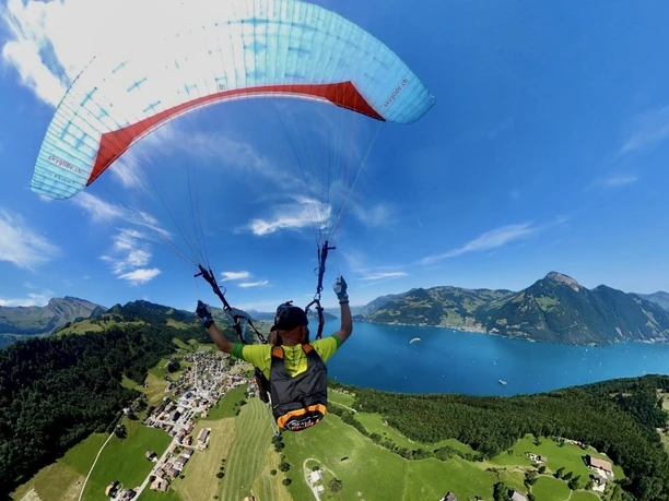 Bienvenue chez SkyGlide - votre partenaire d'aventure en parapente en Suisse centrale Découvrez la fascination du vol avec SkyGlide. Un pilote tandem expérimenté et certifié par la Fédération suisse de vol libre (FSVL) vous accompagne lors d'un vol en parapente inoubliable depuis les plus belles montagnes de Suisse centrale. La sécurité est notre priorité, tout comme l'encadrement personnel de nos hôtes. Que ce soit un cadeau, une aventure ou le rêve d'une vie - nous le rendons possible. Réservez dès maintenant votre vol en parapente en tandem chez SkyGlide - nous nous réjouissons de vous accueillir.