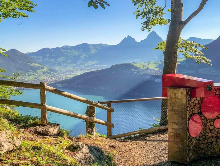 Circuit guidé avec des histoires passionnantes. Descente romantique en train de montagne avec le nostalgique Treib-Seelisberg-Bahn jusqu'au lac des Quatre-Cantons. Café et gâteaux dans la maison historique zur Treib et retour à la station supérieure.