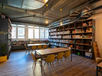 La visite se termine dans l'agréable café des jeux de société, où l'on peut choisir parmi plus de 900 jeux de société et de cartes.