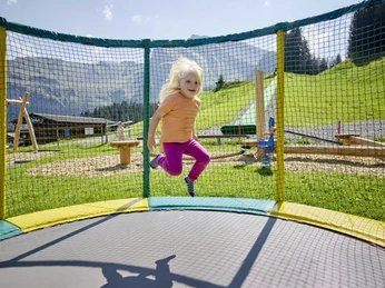 En outre, le point fort du nouveau Goldi-Gwunderasenweg, le parcours de billes en bois, directement près de l'aire de jeux!