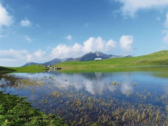 Depuis le parking Älggi, le chemin mène au centre géographique de la Suisse. La suite passe par l'Älggiboden, en passant par l’alpage Ziflucht en direction de Teltiegg. Le chemin romantique continue à travers la forêt jusqu'à l’alpage Gschwanten. De là, on suit la route jusqu'au Vorder Seefeld. La vue magnifique sur les Alpes de Lungern et de Berne vaut une pause. Du Vorder Seefeld au Sachsler Seefeld, le chemin de randonnée monte peu. Le lac Seefeld apparaît au pied du Seefeldstöckli. Ce splendide lac de montagne invite à la contourner. Selon la position du soleil, le Brünighaupt, l'Abgschütz ou le Seefeldstöckli se reflètent dans l’eau claire.