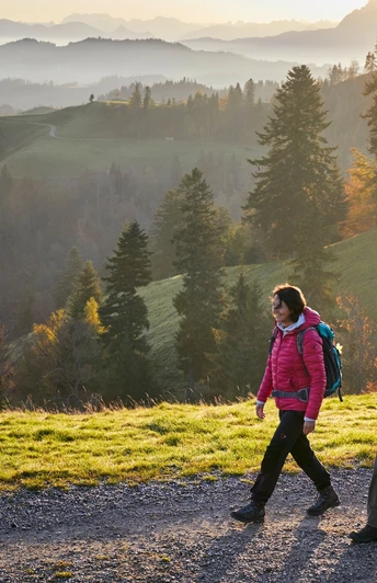 Le chemin, bien balisé, longe le sentier frontalier « Suisse Mobil Route 65 » à travers des chaînes de collines jusqu'au sommet à 1406 m. Divers espaces de repos invitent à pique-niquer en chemin. Du Napf, la vue panoramique s'étend sur les Alpes, le Jura et le Plateau suisse. Le sentier descend abruptement via Trachselegg jusqu'à Luthern Bad, d'où nous prenons le car postal jusqu'à Zell, puis changeons de train.