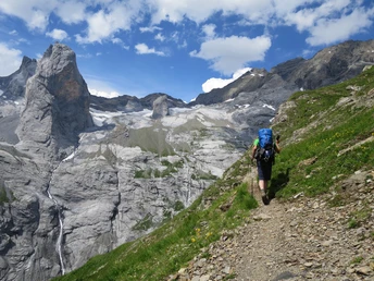 L’étape Cavardirashütte - Etzlihütte passe par le Brunnifirn. Des connaissances élémentaires ainsi qu’un équipement approprié pour les tours sur glacier sont indispensables.