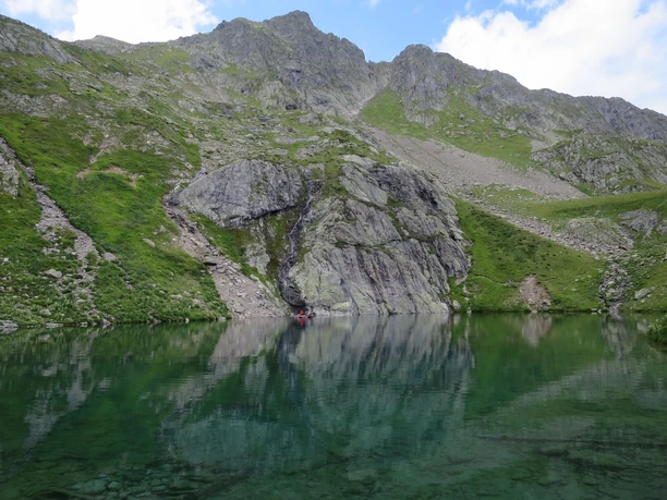 Sous le refuge se trouve le Nidersee d'un bleu foncé exceptionnel, qui se présente selon l'incidence de la lumière également dans un magnifique bleu turquoise. L'Obersee est également bien adapté pour se détendre et se prête parfaitement à une baignade rafraîchissante.