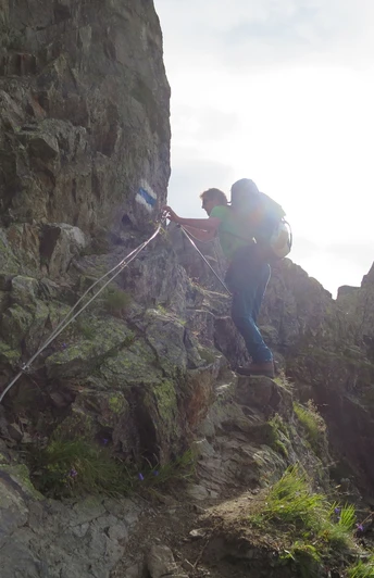 - Pour les sentiers alpins, selon l’étape, une corde, un harnais, un piolet et des crampons sont recommandés.