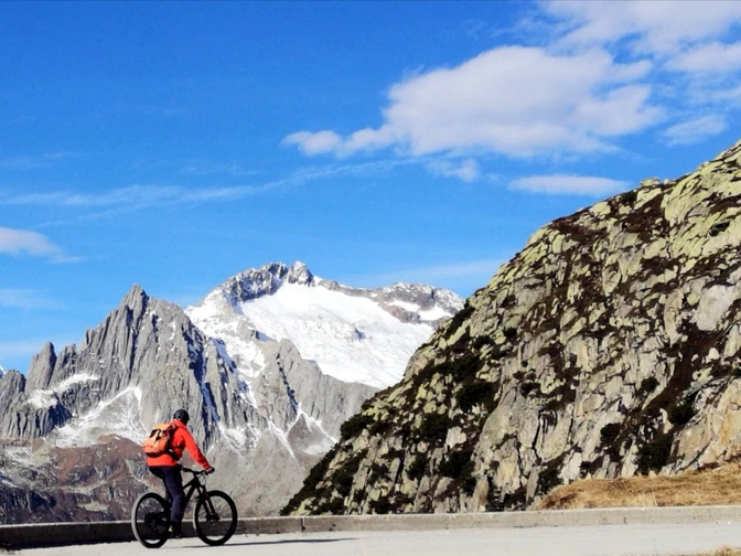 La montée à Gütsch depuis Andermatt via Nätschen peut être raccourcie en prenant le train jusqu'à la gare de Nätschen. Vous éviterez ainsi la circulation sur la route du col. L'ascension est en grande partie pavée, mais comporte quelques parties abruptes, en particulier dans la seconde moitié. La vue sur le lac Lutersee est spectaculaire. Juste après le lac, une descente technique commence, les pistes sont un peu érodées mais elles sont praticables et amusantes pour les bons coureurs.
