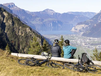Après une courte montée, vous accédez au chemin de muletiers historique du Gothard, bordé de beaux murs en pierre sèche et de tas de pierres, passant par Vorder- et Hinter Ried jusqu'à Meitschligen. Sur la route de montagne à pente douce, le parcours mène au village de Gurtnellen, où deux restaurants offrent une pause. Ensuite, la montée devient plus raide et vous traversez un paysage fascinant parsemé de prairies sèches riches en espèces et d'orchidées rares jusqu'à Heissigegg. Là, vous serez récompensé par une superbe vue sur la haute vallée de la Reuss. La suite du trajet se fait par une belle route forestière jusqu'au pittoresque lac d'Arni, qui propose des emplacements de pique-nique, des foyers et des restaurants pour une pause déjeuner – pour faire le tour du lac, il faudra toutefois quitter brièvement votre vélo et prendre le chemin à pied. La descente sur le sentier alpin un peu raide et accidenté mettra vos freins et votre suspension à rude épreuve, mais ravira le cœur de tout cycliste. Un peu secoué, vous arriverez au hameau d'Intschi et suivrez la route cantonale pour retourner à Amsteg.