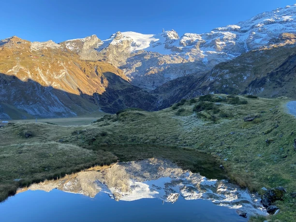 Après une courte montée, où, avec un peu de chance, vous pouvez voir quelques marmottes et même des bouquetins, vous descendez ensuite et traversez à nouveau la frontière cantonale.
