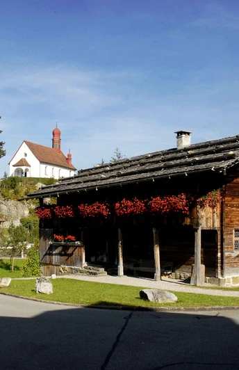 Après la chapelle du Ranft, le parcours continue sur un pont piétonnier, passe devant la chapelle du Müsli et monte jusqu'à la Melchtalerstrasse. Après un court tronçon dans la forêt, on aperçoit déjà l'église Saint-Niklausen. Le clocher indépendant ainsi que l'intérieur de l'église avec ses fresques médiévales et la voûte en berceau peinte dans un style paysan-baroque valent le détour.