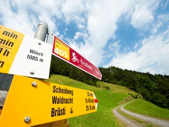 Dès la bifurcation dans le Talweg, à la sortie d'Erstfeld, le majestueux Schlossberg vous indique la direction à suivre. La route de vallée sinueuse vous met au défi dès le début avec une montée raide. Sur la route de vallée, vous passez les charmants hameaux et habitations qui correspondent aux typiques villages dispersés des régions montagneuses d'Uri. Au Bergheimetli Wilerli, à 1085 m d'altitude, vous atteignez aussi le point culminant de votre parcours. Le singletrail qui suit à travers le Plattental, avec sa courte descente techniquement exigeante sur le chemin de montagne près du Bockitobel, fait battre plus fort le cœur des cyclistes. Au Bockiberg, vous arrivez au point de vue le plus impressionnant de la route. Prenez un instant pour laisser votre regard parcourir toute la plaine de la vallée et la partie inférieure de la vallée de la Reuss. À Hofstetten, à côté du téléphérique nostalgique Hofstetten-Wilerli avec cabine ouverte, vous atteignez la plaine de la vallée.
