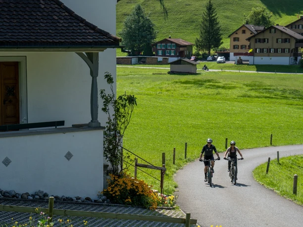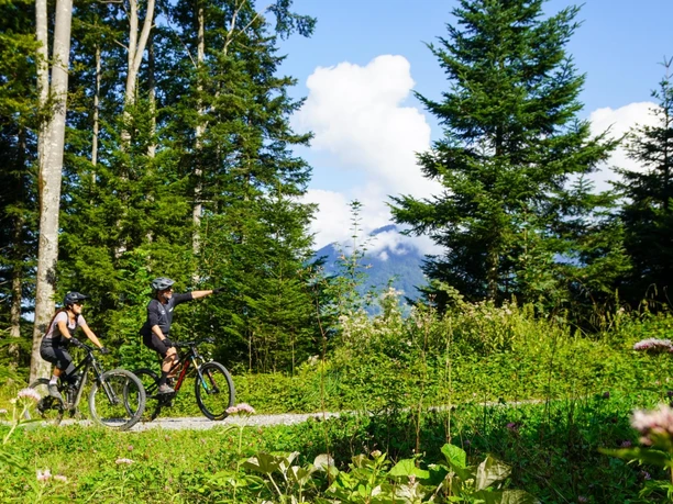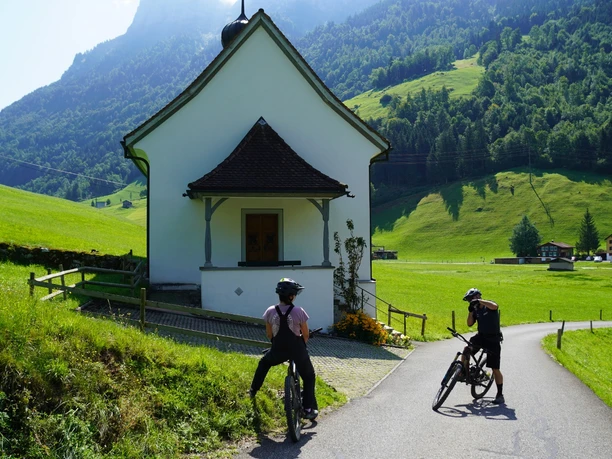 Le départ en direction de Seelisberg est calme et savoureux. On passe devant la chapelle de la Croix avec son tableau de danse macabre, une véritable rareté et beauté. Arrivé au Brennwald, on passe sur des routes forestières. Après une courte montée, on atteint la cabane "Schützen-12er", une aire de repos avec un abri et un foyer. En passant devant la ferme d'Oberschwand - après un trajet varié - la belle vue sur le Seelisberger Seeli et les montagnes uranaises attend le randonneur à la croisée des chemins de Scheidegg. De magnifiques formations rocheuses dans un environnement forestier doux vous attendent. Le biktour passe exactement par l'endroit où le film "Die Hohle Gasse" a été tourné dans les années 50. Le retour n'est plus qu'une formalité, ou plutôt un roulement tranquille en direction de l'arrivée à Emmetten.