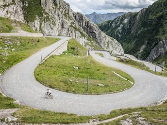 Du village d'anciens muletiers Hospental avec sa tour historique, on monte jusqu'au col du Gothard (2091 m d'altitude). La route du col du Gothard de Hospental monte en passant par des prairies verdoyantes et des parois rocheuses abruptes. On découvre une grande diversité de plantes et d'animaux. Peu avant le sommet, on traverse de petits lacs de montagne invitant à la pause. Une fois atteint le col du Gothard, on est récompensé par une vue à couper le souffle et des possibilités de restauration. Au sommet, différentes cultures et régions linguistiques se rencontrent non seulement, mais la langue change aussi de l'allemand à l'italien, tout comme les localités et l'offre culinaire qui dégagent une atmosphère italienne. Au Gotthard Hospiz au sommet, les cyclistes sur route empruntent la route historique du col, la célèbre Tremola. Les serpentines spectaculaires en descente vers Airolo sont considérées comme le plus long monument architectural de Suisse.