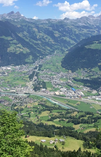La télécabine nous emmène presque à 1 600 mètres d'altitude. Ici, sur la terrasse ensoleillée du Brüsti, nous profitons de la vue panoramique. Ceux qui le souhaitent peuvent aussi jouer aux cartes dans une des auberges de montagne. Ensuite, nous descendons vers le sud, dans la zone de protection des plantes Waldnacht. Au petit lac de retenue à l'entrée du Bockitobel, le chemin s'enfonce dans la gorge. Devant nous s'élève une impressionnante paroi rocheuse, qui surplombe verticalement la vallée de la Reuss de plus de 1 000 mètres.