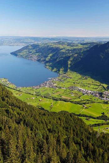 Au début de cette randonnée d'environ 2 h 30, vous flânez tranquillement le long de la promenade du lac de Brunnen avant de monter en altitude. Vous ne devez surtout pas sous-estimer la montée un peu raide vers Urmiberg. Arrivé en haut, une vue légendaire sur le bassin de Schwytz ainsi que sur le lac des Quatre-Cantons s'offre à vous.