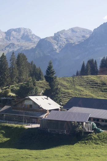 Depuis la fromagerie du monastère, continuez tout droit en direction de Bänklialp. Après le pont, tournez à droite et suivez l'eau de l'Aa jusqu'à la station de base des téléphériques de Titlis. Le funiculaire emmène aisément les petits pieds jusqu'à Gerschnialp. Depuis la station de montagne, le chemin passe d'abord par la forêt puis traverse la prairie jusqu'au restaurant Untertrübsee (cuisine suisse raffinée). Après seulement quelques mètres sur la route goudronnée, se trouve sur la gauche la fromagerie alpine Untertrübsee. De là, reprenez le même chemin jusqu'à la bifurcation près de la forêt. Au lieu de revenir à la station de montagne, traversez la prairie sous le télécabine Engelberg-Trübsee-Stand jusqu'à la fromagerie alpine Gerschnialp. Ensuite, une courte marche à pied mène au restaurant Gerschnialp (cuisine suisse raffinée). Descendez à droite à travers la Gerschniwald pour retourner à Engelberg, où vous sortez de la clairière près de Bänklialp.