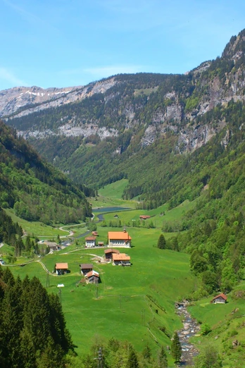 L'arrêt de bus "Hinter Seeberg" dans le Bisistal, près de l'EBS (Électricité du district de Schwyz) centrale construite à proximité de la plus grande source karstique de la vallée de la Muota, est notre point de départ. Le Bisistal est l'une des régions les plus pluvieuses du côté nord des Alpes, ce qui a naturellement conduit à l'utilisation de l'énergie hydraulique. Entre 1952 et 1970, plusieurs centrales électriques ont été construites le long de la Muota.