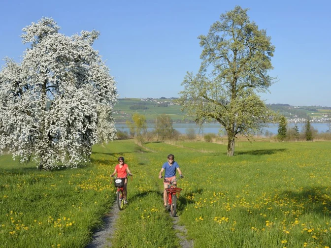 Au cœur de la Suisse centrale se trouve le lac de Sempach, niché entre de douces collines et offrant une vue directe sur la majestueuse chaîne des Alpes. Le parcours à vélo fait le tour du lac, longeant le rivage, traversant champs et forêts, et passant par de pittoresques villes médiévales.