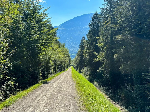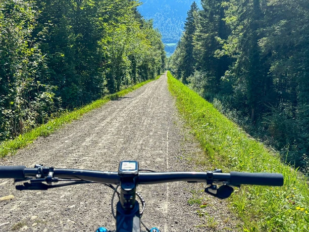 Dès que la forêt s'éclaircit, la vue s'ouvre sur la vallée de Laui, un vrai point fort. De là, tu suis tranquillement le cours d'eau pour retourner au point de départ à Giswil. Le parcours est balisé en continu avec le numéro 294 Grossteilerberg Bike.