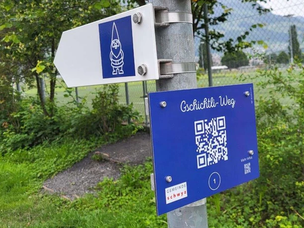 Scannez le QR-Code et écoutez une histoire passionnante. Tout fonctionne sans application. Apporter des écouteurs ou une petite enceinte peut être utile, mais n'est pas nécessaire. Les stations ont été installées de manière à être aussi silencieuses que possible. En chemin, des bancs de repos vous invitent à faire une pause, une boutique paysanne pour reprendre des forces, des aires de jeux pour prendre l'air et un restaurant pour un bon café.