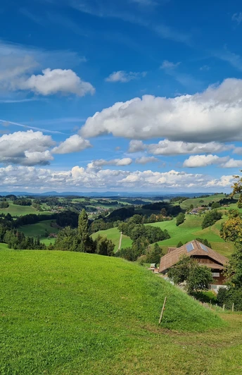 Du lieu de pèlerinage Luthern Bad, le chemin passe devant le restaurant Hirschen le long du fond de la vallée jusqu'à la bifurcation « Wisshubelhütten ». Ensuite, le chemin traverse de façon variée des bois et des pâturages. Bientôt, une belle vue sur la région du Napf et la chaîne du Jura s'offre à vous. Depuis Unterberg, le chemin suit la route principale peu fréquentée jusqu'à Hintersagi.