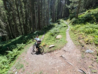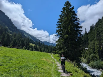 Le chemin du retour vous mène à l'Alp Butzli - ne manquez pas de faire un détour par le lac de Butzli, situé dans un cadre idyllique ! En empruntant un singletrail avec des passages techniques exigeants, vous arriverez à Guferen et ensuite à l'Alp Stössi, où vous pourrez déguster un excellent fromage d'alpage. Via Herenlimi, vous rejoignez la station inférieure du téléphérique de Golzern. Anton, vous bifurquez en direction de Vorder Ried et profitez pour finir de l'attrayant singletrail en direction d'Amsteg.
