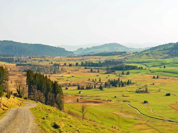 Nous commençons la randonnée à la gare de Rothenthurm. De là, nous marchons vers le village et directement vers le premier point fort. Le chemin traverse l'arc de la porte de la tour rouge, qui donne son nom à Rothenthurm. Ensuite, le sentier traverse la route principale et passe sur les voies ferrées. Nous quittons lentement le village et devant nous s'ouvre la vue sur la tourbière. Près de la station d'épuration de Rothenthurm, le chemin emprunte brièvement la route asphaltée et après avoir traversé le pont, il faut faire attention à ne pas manquer la bifurcation sur la gauche. Le chemin monte alors et nous grimpons en zigzag sur une prairie. En haut nous attend un foyer accueillant et une superbe vue sur la tourbière.