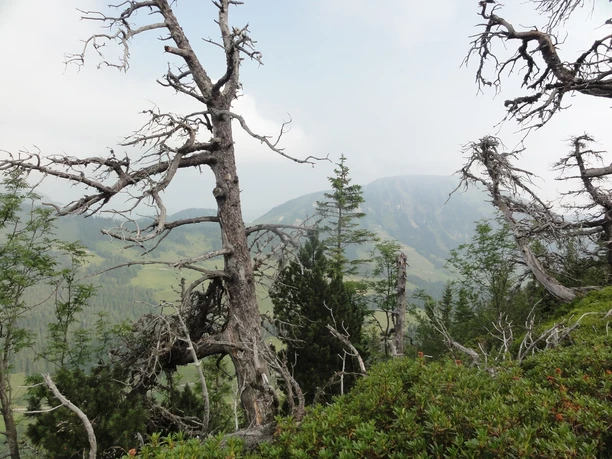 En suivant la petite route d'accès vers l'ouest, tu passes par la cabane Andresen, d'abord à travers des pâturages, puis en montant dans la forêt sur la crête de Schlieren jusqu'à Bärnerstig, un ancien passage vers l'Entlebuch. De là, la crête de Schlieren monte et descend légèrement vers le nord à travers des buissons de myrtilles et près de pins tordus et d'épicéas. Ensuite, le chemin balisé en blanc-rouge-blanc traverse forêts et pâturages avec des vues magnifiques sur la vallée de Schlieren et le lac des Quatre-Cantons.