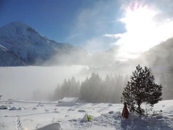 Le téléphérique Intschi-Arnisee nous emmène en six minutes dans un univers alpin à 1'368 mètres d'altitude. Le parcours autour du lac traverse le paysage montagneux enneigé sur un terrain simple avec quelques petites montées et descentes. Le point fort : l'Arnisee gelé avec vue sur le puissant Bristen. Avec sa forme pyramidale régulière à trois pans, il est considéré comme le symbole du canton d'Uri.