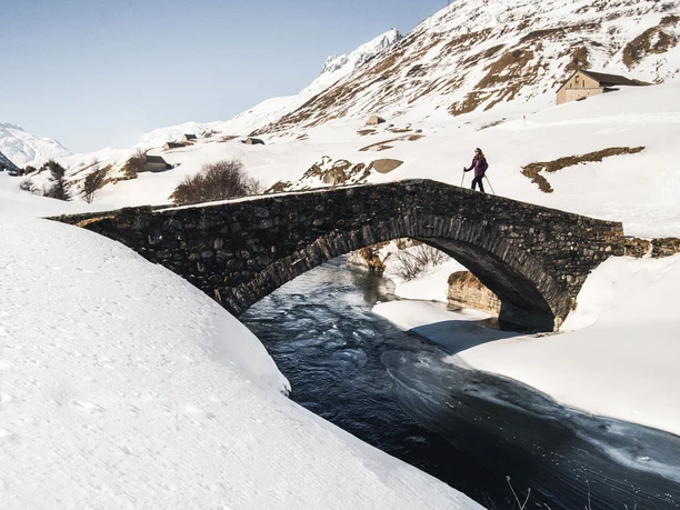 Après le départ à la gare de Hospental, on traverse rapidement un vieux pont en arc qui enjambe la Furkareuss. Suivant les traces des anciens muletiers, on suit maintenant sur une hauteur une partie de l'historique Furkaweg. Après avoir traversé la piste de ski de fond, une courte montée commence en direction de Bielenboden. La vue s'étend sur la magnifique vallée de l'Urseren avec Andermatt en arrière-plan. Après une descente douce, suit une belle crête puis une descente vers la Reuss. En remontant le long de la rivière, on revient rapidement à la gare de Hospental.
