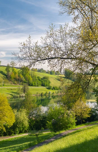 Sur le côté sud, vous trouverez un chemin de gravier qui longe directement la rive. Bientôt, vous atteindrez le centre d'aviron Luzern-Rotsee où une aire de jeux, une pelouse pour se détendre et des bancs vous invitent à faire une pause. Après 10 minutes de marche supplémentaires, vous arriverez à la station du ferry Rotsee. En été, ce ferry vous permet de traverser le lac et donc de raccourcir la randonnée.